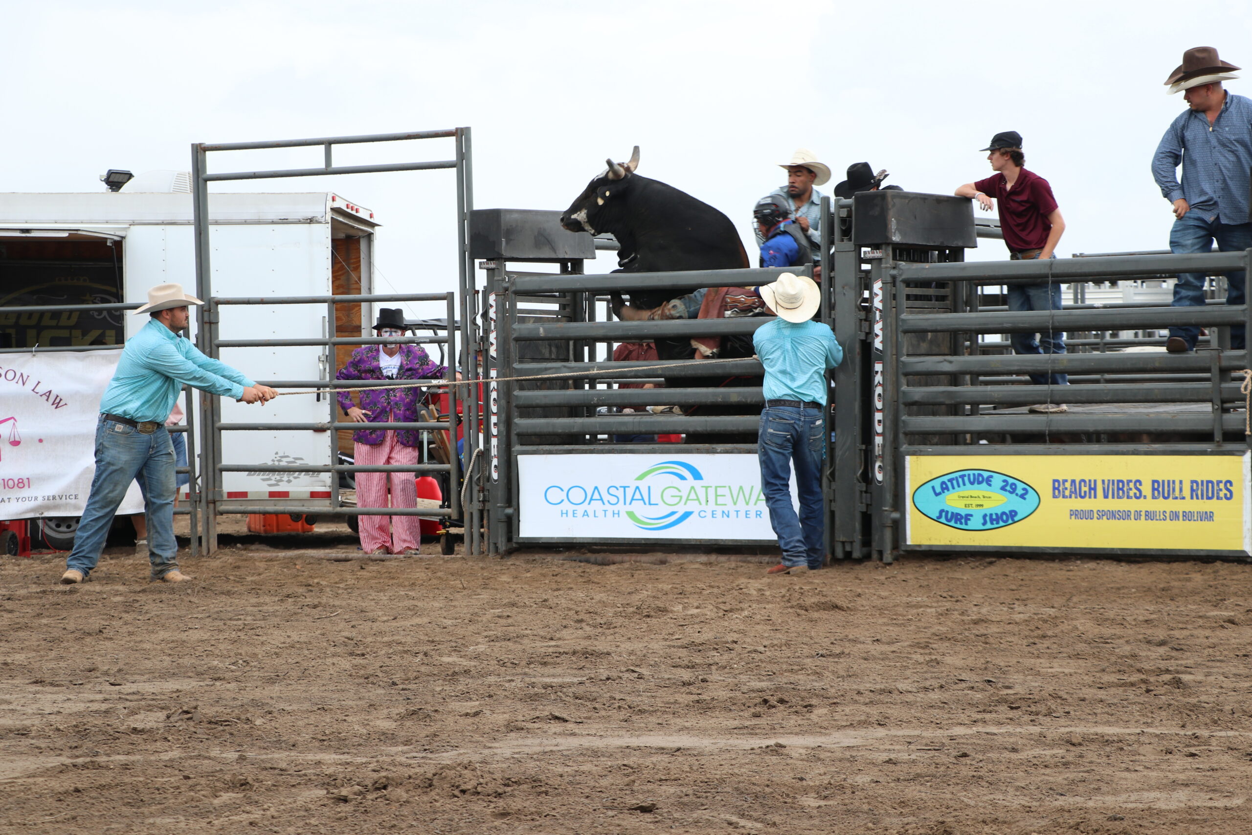 The rain showers didn’t stop the crowd from coming out and enjoying the 2026 Bulls on Bolivar event presented by the Bolivar Arena Association. Bulls on Bolivar was held this past Saturday at the future sight of the Bolivar Arena at Swedes Park, 1605 Hwy 87, Crystal Beach. Livestock for the event was provided by the Champion Rodeo Company of Buffalo, TX. The crowd filled the stands and were excited to cheer on participants in Mutton Bustin’, Bull Riding, and the Sheep Scramble.