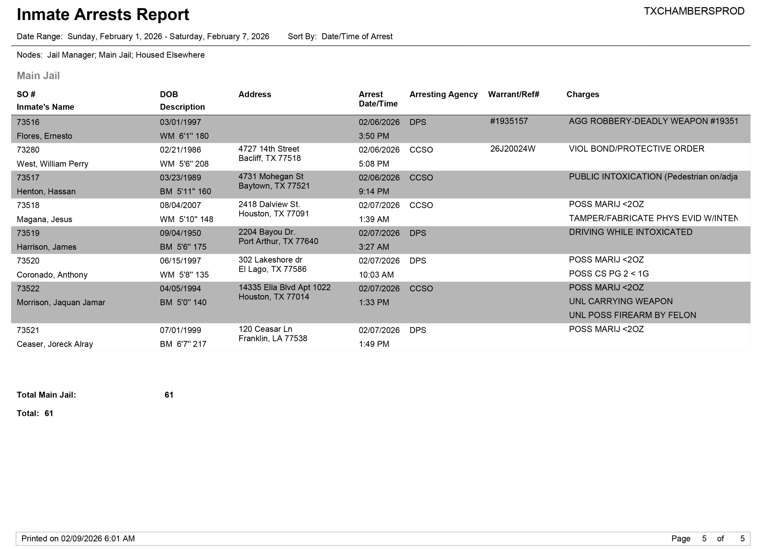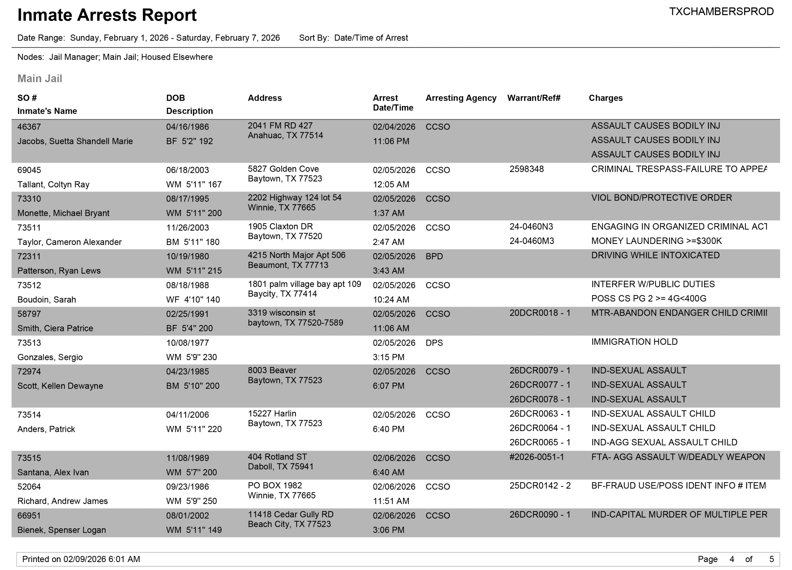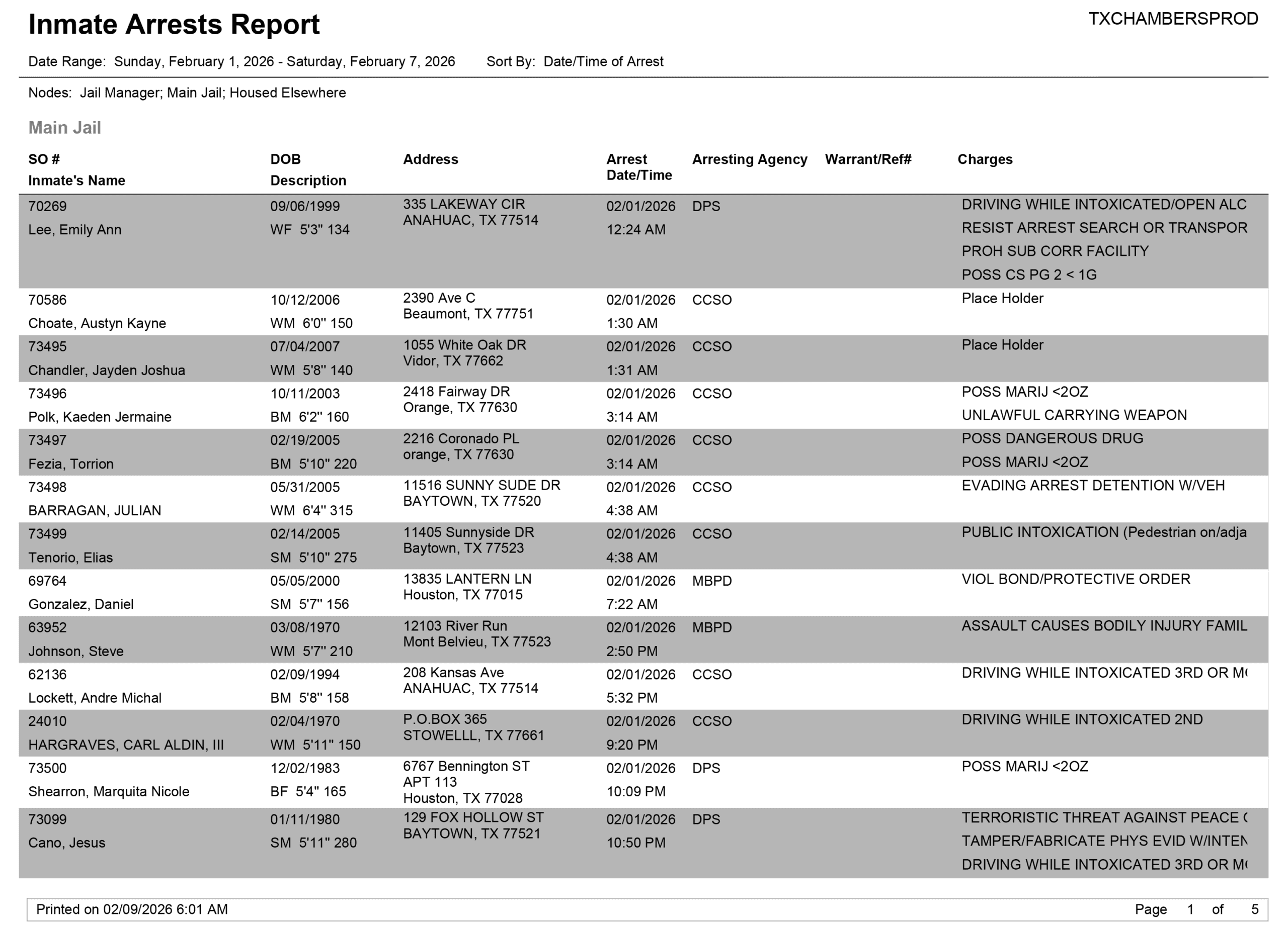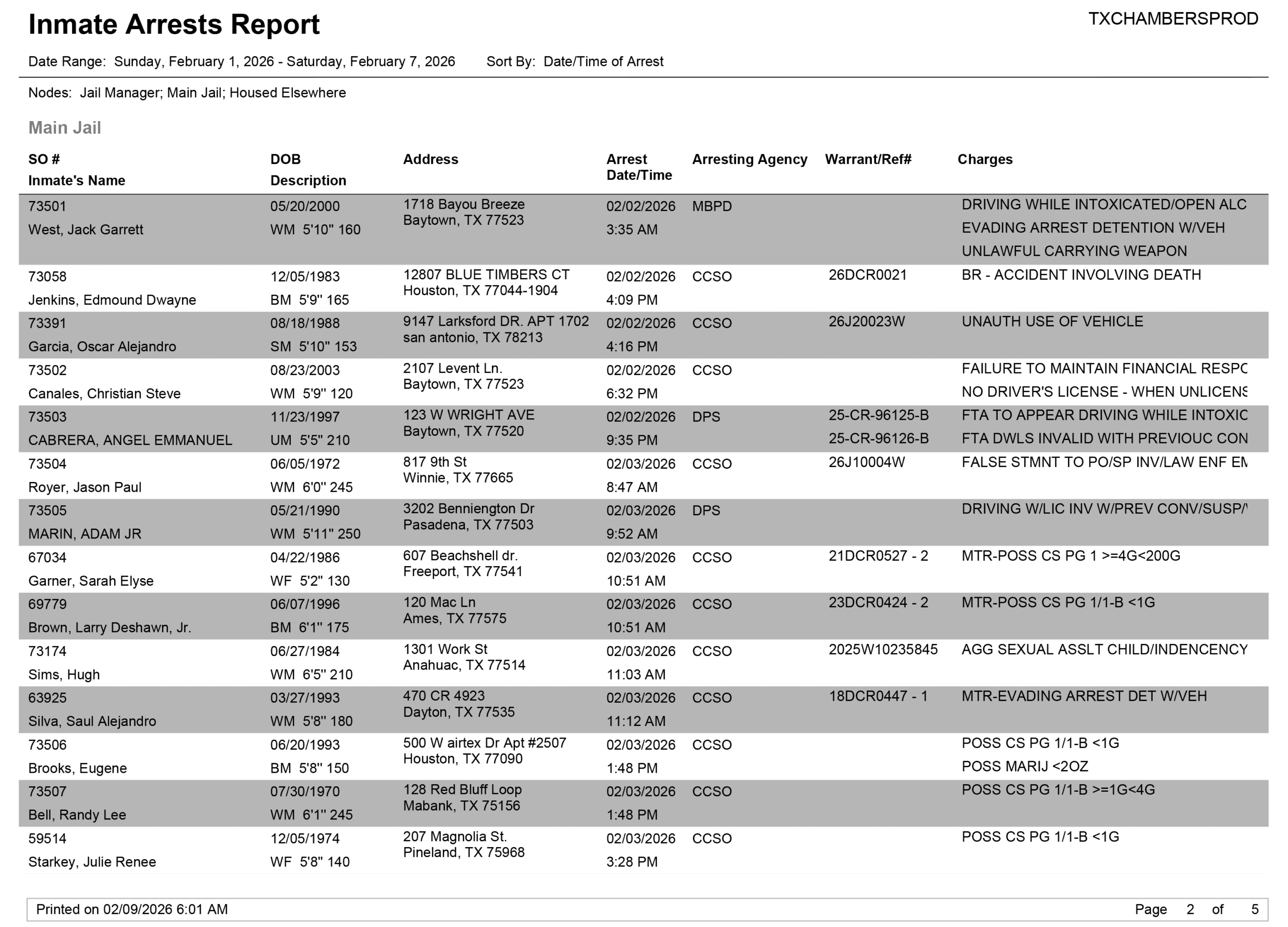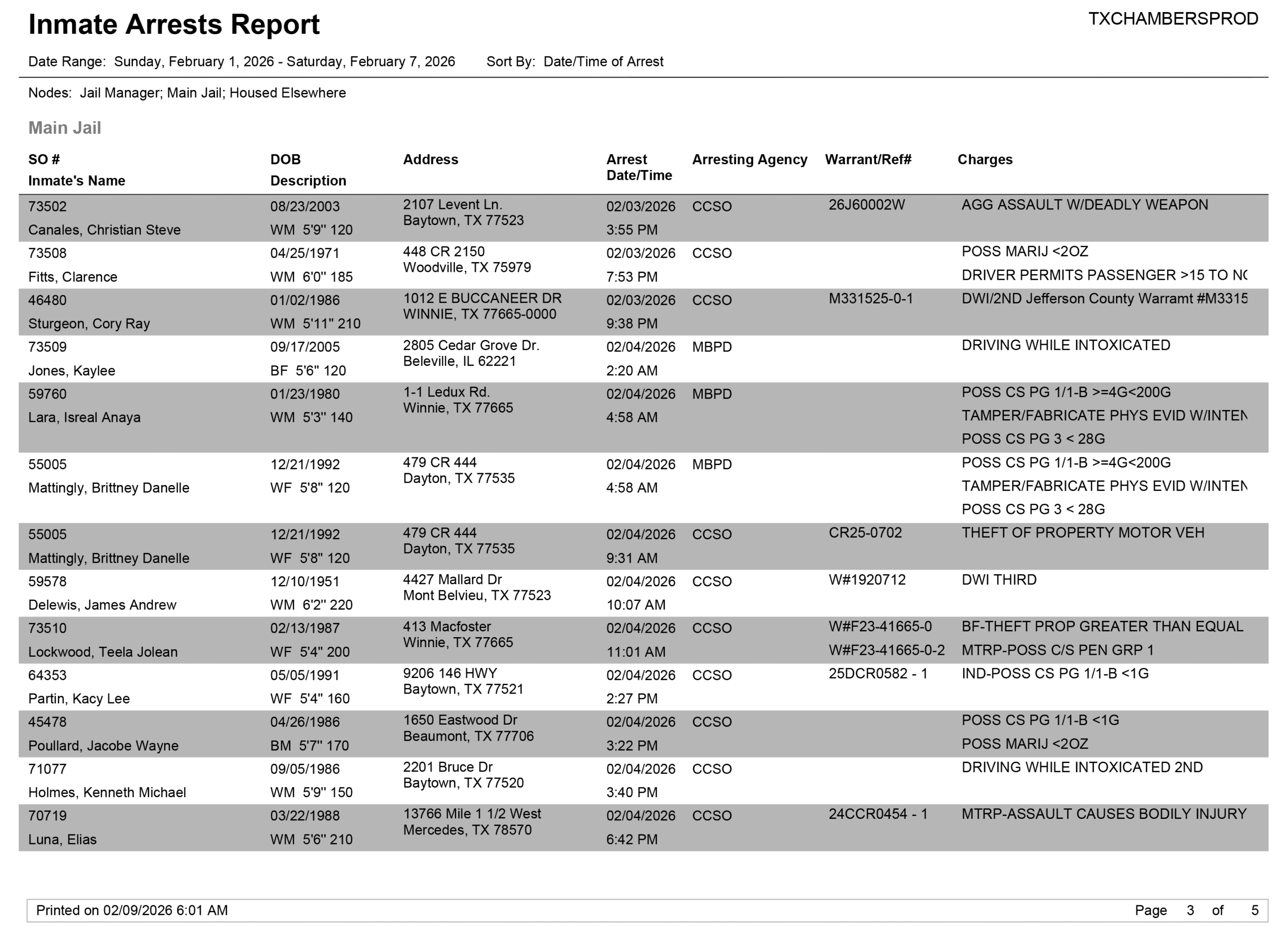 Facebook LinkedIn Pinterest Email Print Chambers County Sheriff Brian Hawthorne Records Week of February 1, 2026 – February 7, 2026 PreviousDavid Murrell Benefit Draws a Crowd Local News February 18, ...