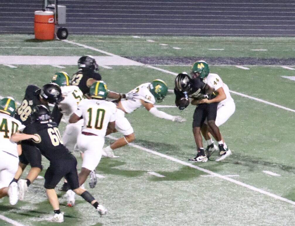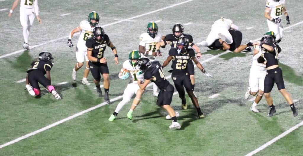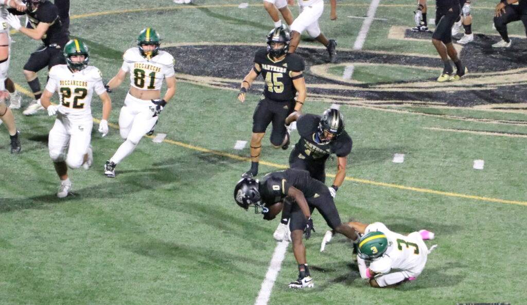 Leading the Bucs defensively were #22 Dalton Dishman with 11 solo tackles, 3 assists, 1 TFL, and 1PD; #52 Aiden Baker with 10 solo tackles and 2 assists; #12 Tanner Salazar with 8 solo tackles, 3 assists, 1 TFL and 1 Hurs; #8 Bryce Guillory with 6 solo tackles, 5 assists, and 2 PDs; #24 Luke Hampton with 6 solo tackles, 2 assists, 1 TFL, and 1 sack; #5 Rashard Hale with 4 solo tackles, and 2 assists; #7 Reid Todd with 4 solo tackles and 3 assists; #10 Darius Edmonson with 4 solo tackles, 3 assists 1 Hurs, and 1 Fumble recovery; #44 Sean Beighley with 4 solo tackles, 1 assist, and 2 TFLs; #54 Jason Janak with 5 assists; #3 Ethan West with 3 solo tackles; #81 Rylan Fontenot with 2 solo tackles, and 1 TFL; #2 Colby West with 1 assist; #20 Tai’Veon Harmon with 1 solo tackle; #40 Gradyn Oliver with 1 solo tackle, and 1 assist; and #75 Jermaul Hayes with 1 solo tackle. Kicker #6 Adan Garcia was 5 of 5 scoring 5 points for the Bucs.