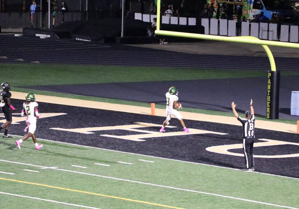 The Bucs rushed for a total of 158 against the Anahuac Panthers. #1 Koby Jones had 3 carries for 7 yards; #5 Rashard Hale had 4 carries for 47 yards; and #24 Luke Hampton had 2 carries for 24 yards.