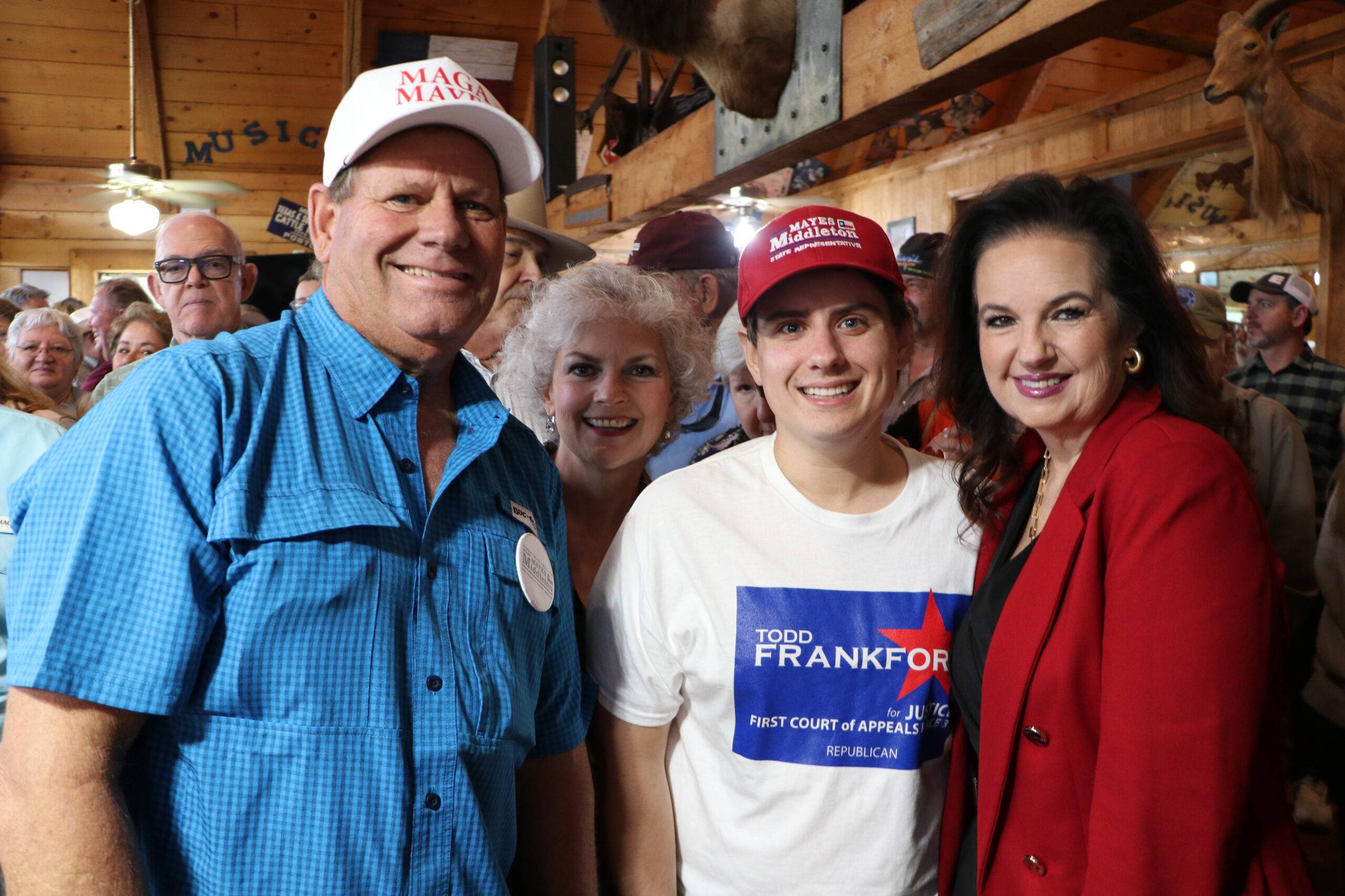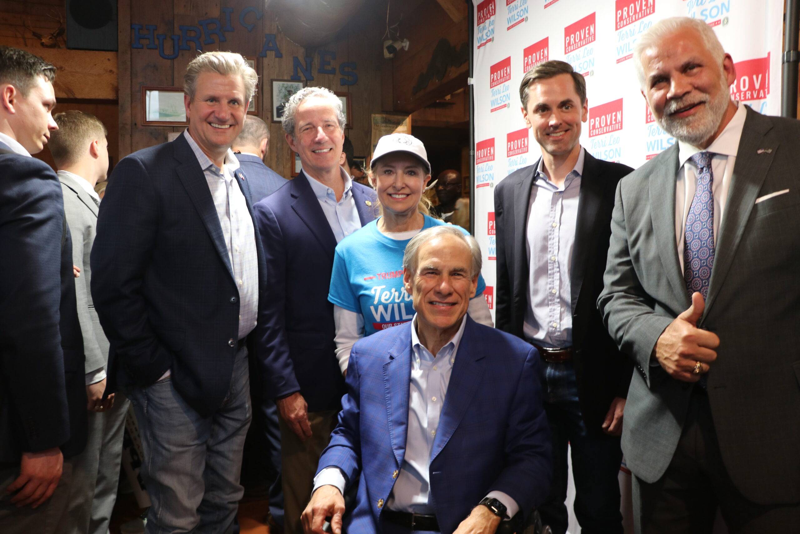Hundreds of supporters filled Tony’s BBQ and Steakhouse in Stowell to see the Governor and meet with State Representative District 23 Terri Leo Wilson, Texas Agricultural Commissioner candidate Nate Sheets, Texas Comptroller Kelly Hancock, and State Senator District 4 candidate Brett Ligon. State Senator District 11 Mayes Middleton, who is running for Texas Attorney General, was in attendance as well as several other candidates for office.