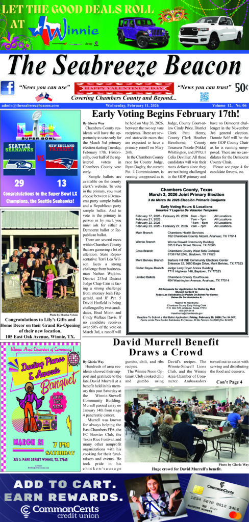 Facebook LinkedIn Pinterest Email Print By Gloria Way The Chambers County GOP held its second 2026 GOP Primary Candidates Forum last Thursday evening at the Winnie Stowell Community Building ...