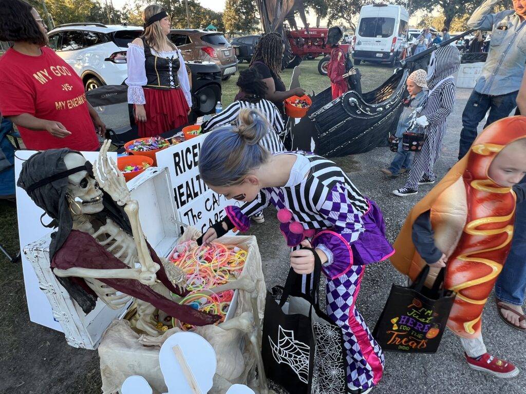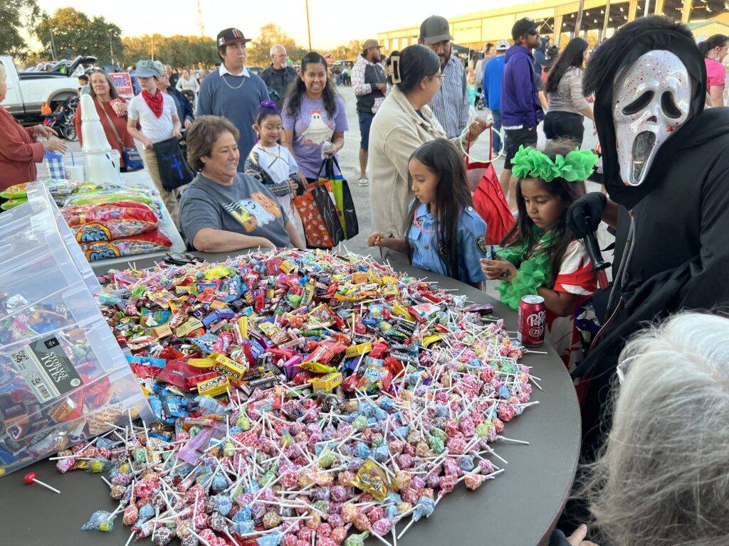 It was a perfect evening for area kids of all ages to converge on Winnie Stowell Park, on Halloween, October 31st to participate in Winnie’s annual Trunk or Treat. Hundreds of children with their friends and families, some estimate closer to 1,000 attendees, visited over 50 organizations, businesses, and individuals “trunks” who handed out candy to all the enthusiastic kids.